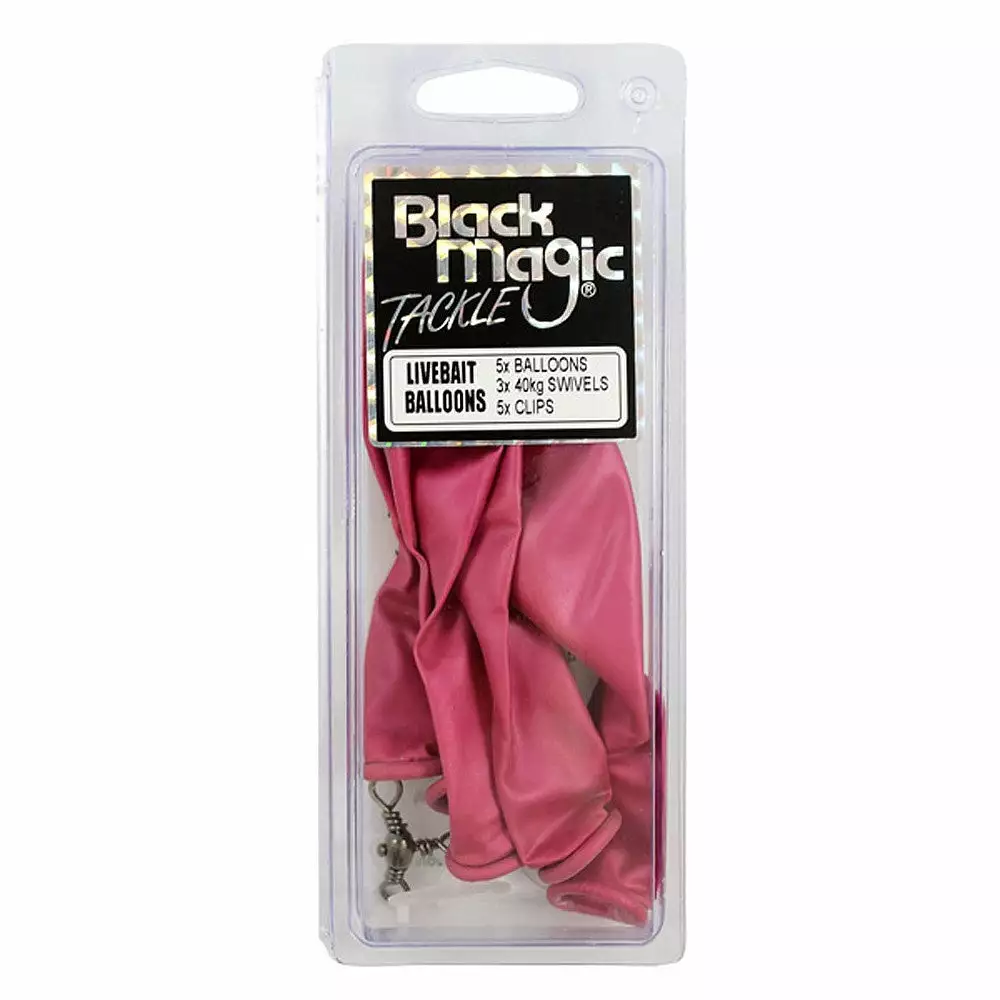 Black Magic Live Bait Balloons are coloured Hot Metallic Pink, a proven Kingfish attractor. Simply blow up the Black Magic Live Bait balloon to the preferred size, insert the balloon neck into the slot in the knotless plastic sealer. Wrap the neck once around the seal ensuring it fits into the slots, insert the crossline swivel in one of the seal slots and the livebait rig is ready for use.