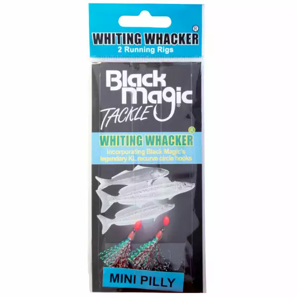 Utilising Black Magic’s legendary KL 01 Japanese recurve hooks, these Black Magic Whiting Whacker Rigs feature two hook paternoster “flasher” rig utilising Japanese hooks and 15lb fluorocarbon leader, plus lumo beads above each fly for added attraction!