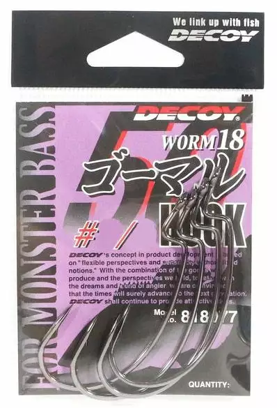 These Decoy W18 Hyper Extra Heavy Weedless Worm Hooks have a breaking strain of up to 18kg. Ideal for heavy tackle.