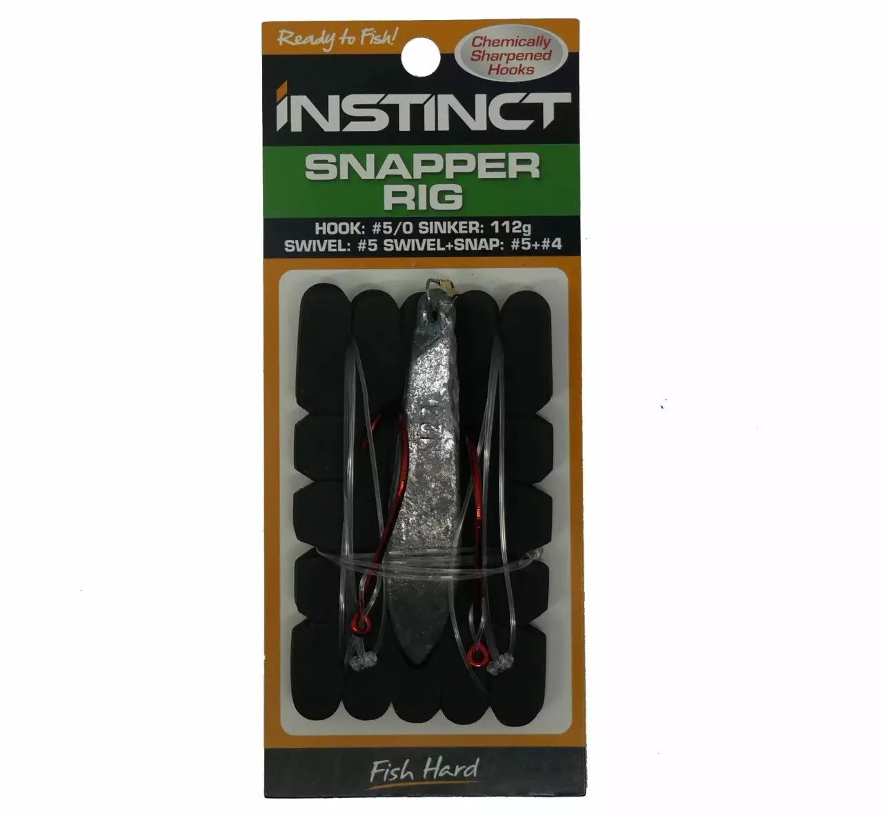 Use an instinct snapper rig for optimum results. Complete with two 5/0 beak hooks, and 112g snapper sinker.
