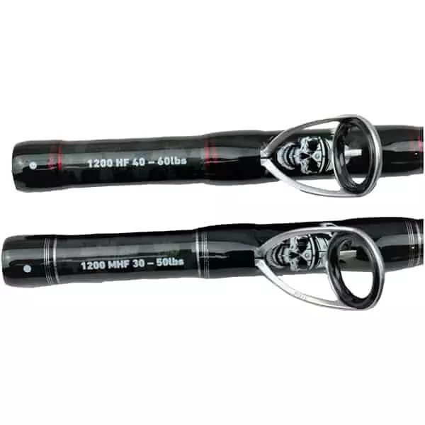 Berserker is a three-section rod measuring in at an overall length of 12 foot. Berserker has 2 rod ends (1) Rated at 30-50lbs medium heavy with fast taper, (2) Rated at 40lb-60lbs heavy action with fast taper. Loaded with high end Fuji components, Berserker features quality Fuji K Series guide frames with alconite rings, FUJI graphite reel seat that caters for oversized reels and quality non-slip EVA grips for comfort and feel. Berserker is dressed in Black Carbon Fibre with Red and silver trim.