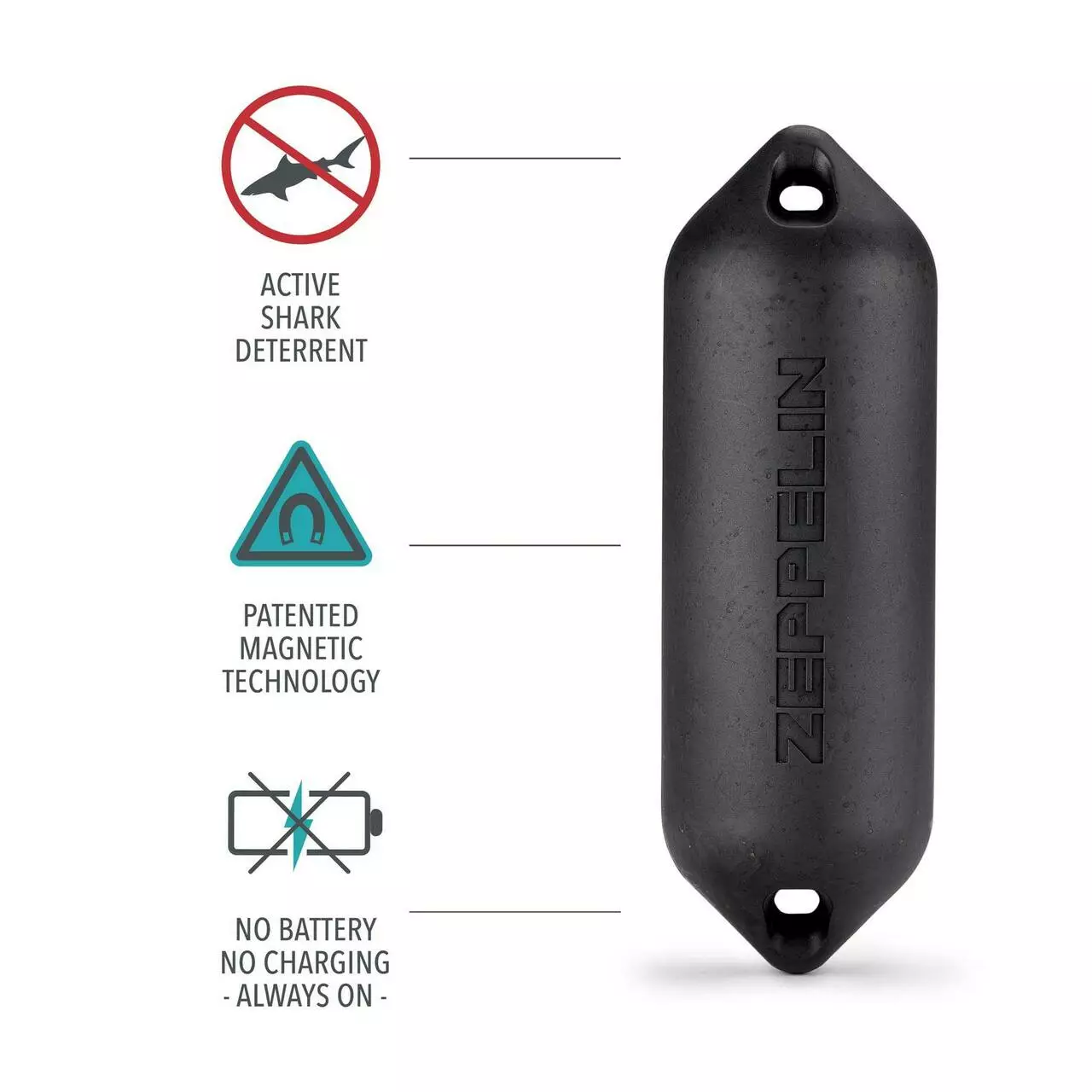 – Shark deterrent field range: 3-6 FT / 1-2 M