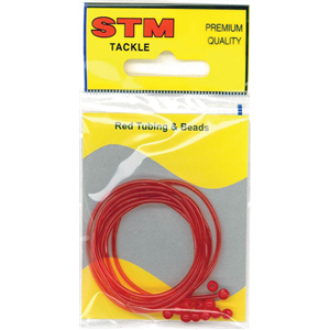 Red plastic tubing and beads to use as an extra attractant in bait rigs.
